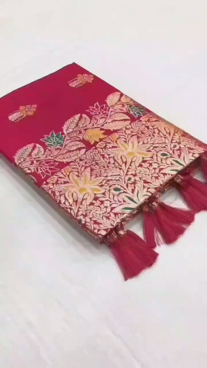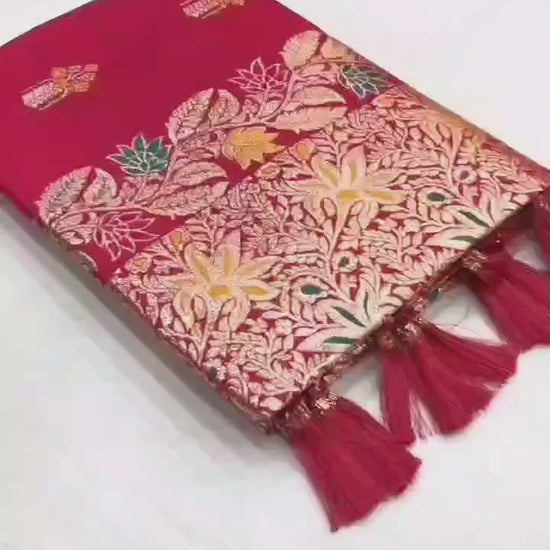 Soft Banarasi silk with zari weaving and Meenakari touch-up all over